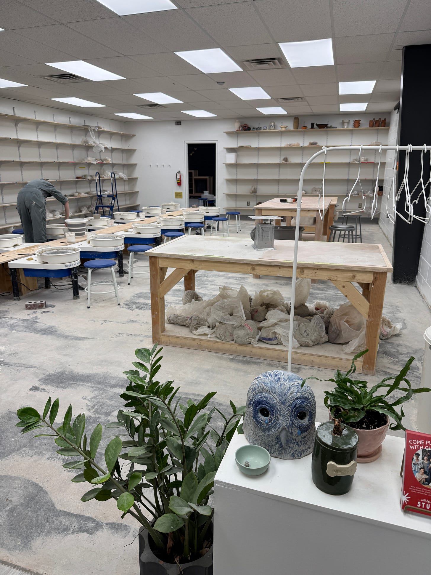 Clay class tonight. We sat at a wheel and made bowls then picked our glaze. Mine, clockwork. Hers, sunny.