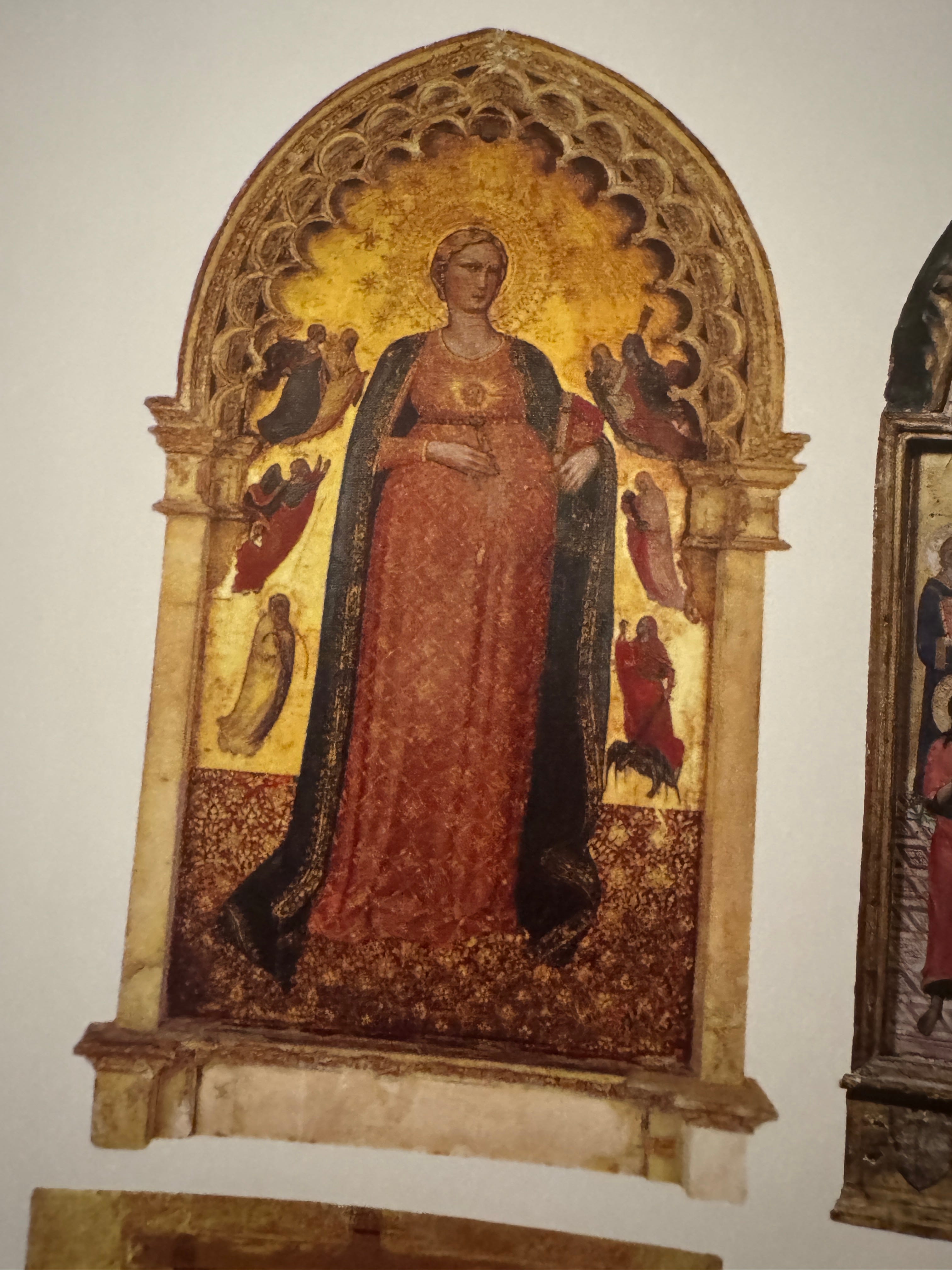 Looking through my Vatican Museum coffee table book that I bought for myself for Christmas and that shows every single painting in the Vatican collection and I am looking at every single page slowly and so slow in fact that I grab a piece of paper and start drawing what I like from each page and am scribbling these simple Madonna figures and these detailed robes and these angels looking up and so many bizarre things and I love it.