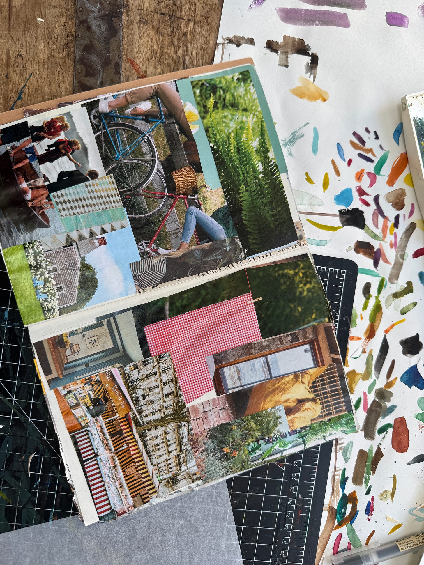Working on materials for my * free* workshop next week (3/20/26 Williamsburg, VA) at the Ampersand International Arts Festival. Looking through my old journals and finding collages I made for my career, my life. Lots of it here.