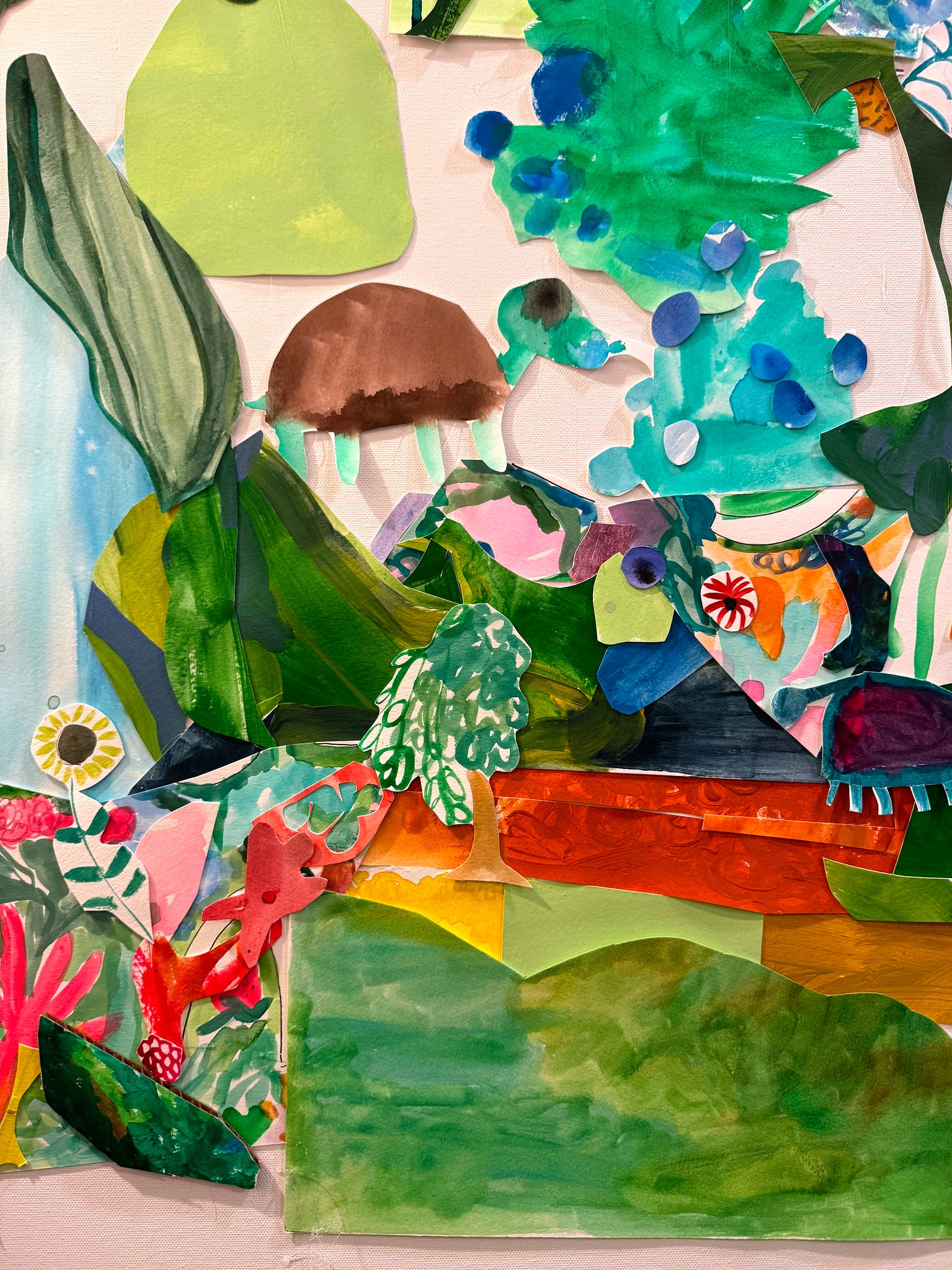 Gluing collage pieces to “Our Garden.” Almost finished. Really enjoying this process - picking up a picture and I remember a kid painting it, focused on it, then cutting it out and adding it to the sprawling, abstract, intricate garden on the canvas. Excited to hand it off to Connor’s Heroes for the upcoming gala.