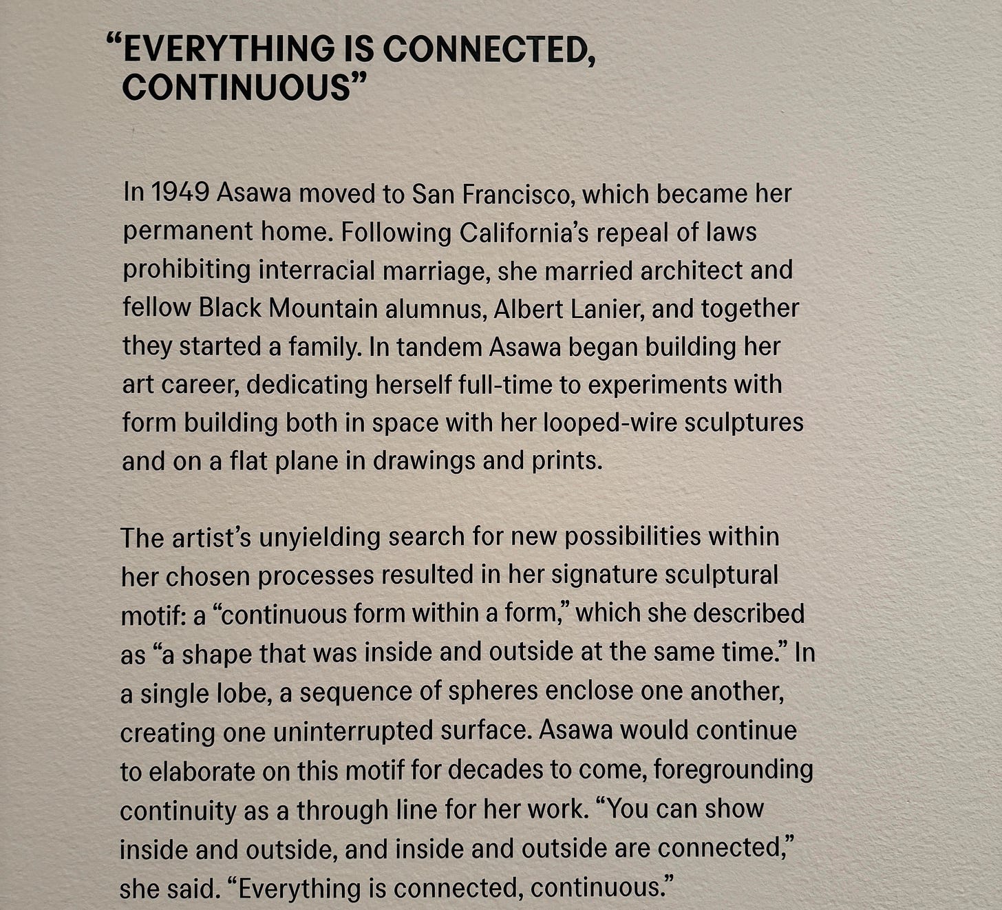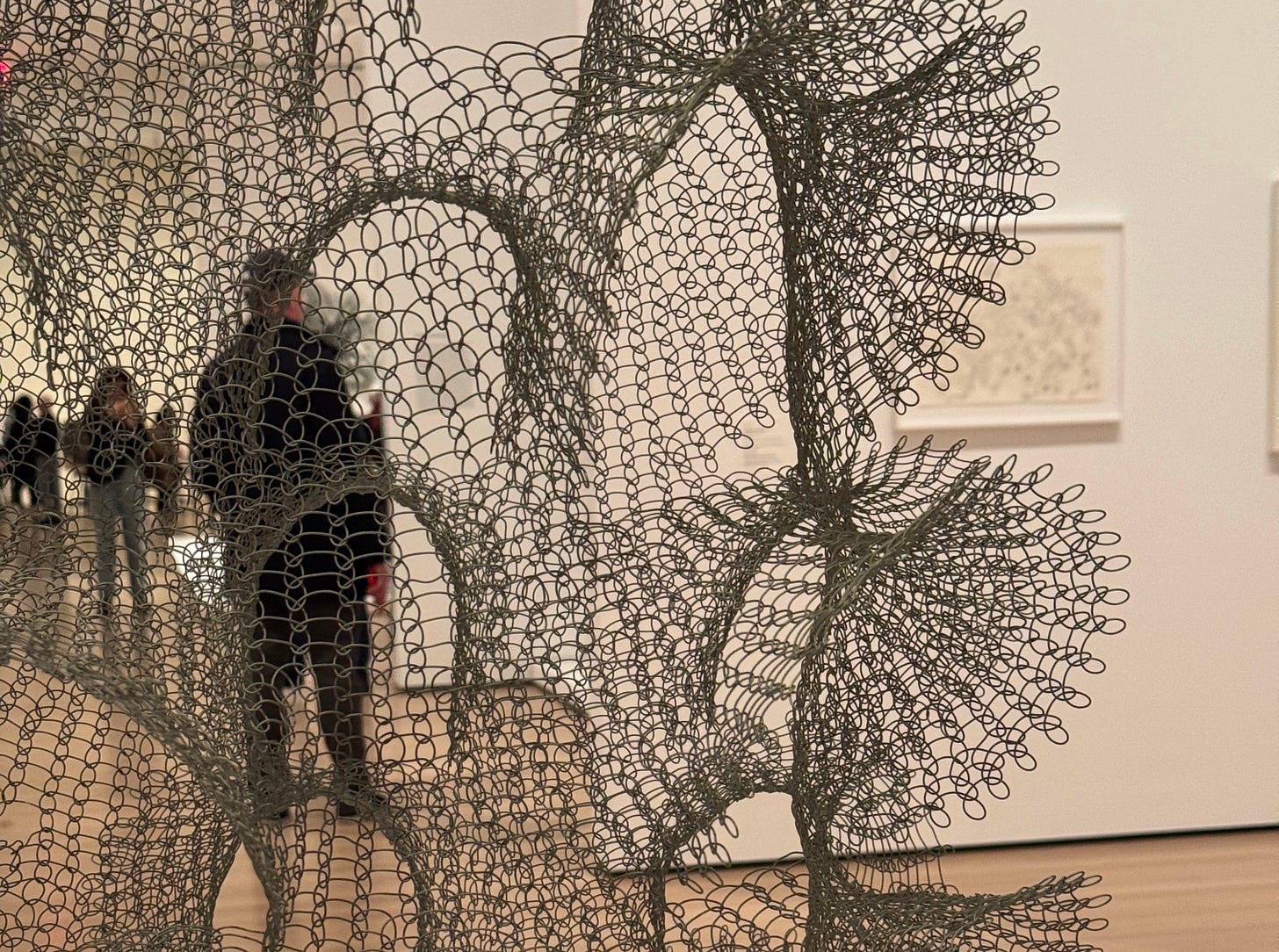 Went to the MoMA with Lila to see the Ruth Asawa Retrospective. I wrote about Ruth earlier in the year here and am moved by her ability to be an artist and a citizen- unyielding in her values. Her work must be see up close. The wire spirals, the delicate line work, the videos of her talking about her garden and murals. I was in heaven and Lila who was suppose to be napping, didn’t. Instead she looked up at the art, held my chapstick, took off her socks, and listened to Ruth.