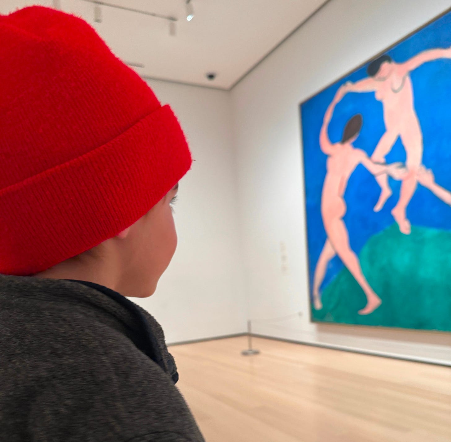 Met up with Andy and Theo in the lobby of the MoMA and switched kids. Theo and I searched to find our favorite Matisse (the Dance, Red Studio) and Van Gogh (Starry Night). We were very lucky to see Helen Frankenthaler’s A Grand Sweep exhibition and looked at her colors for a while. Seeing art in person, up close, is one of my favorite ways to spend time. A person made that. They made all the decisions that lead up to this piece. They used their hands and started somewhere. And now I get a moment with it, standing here.