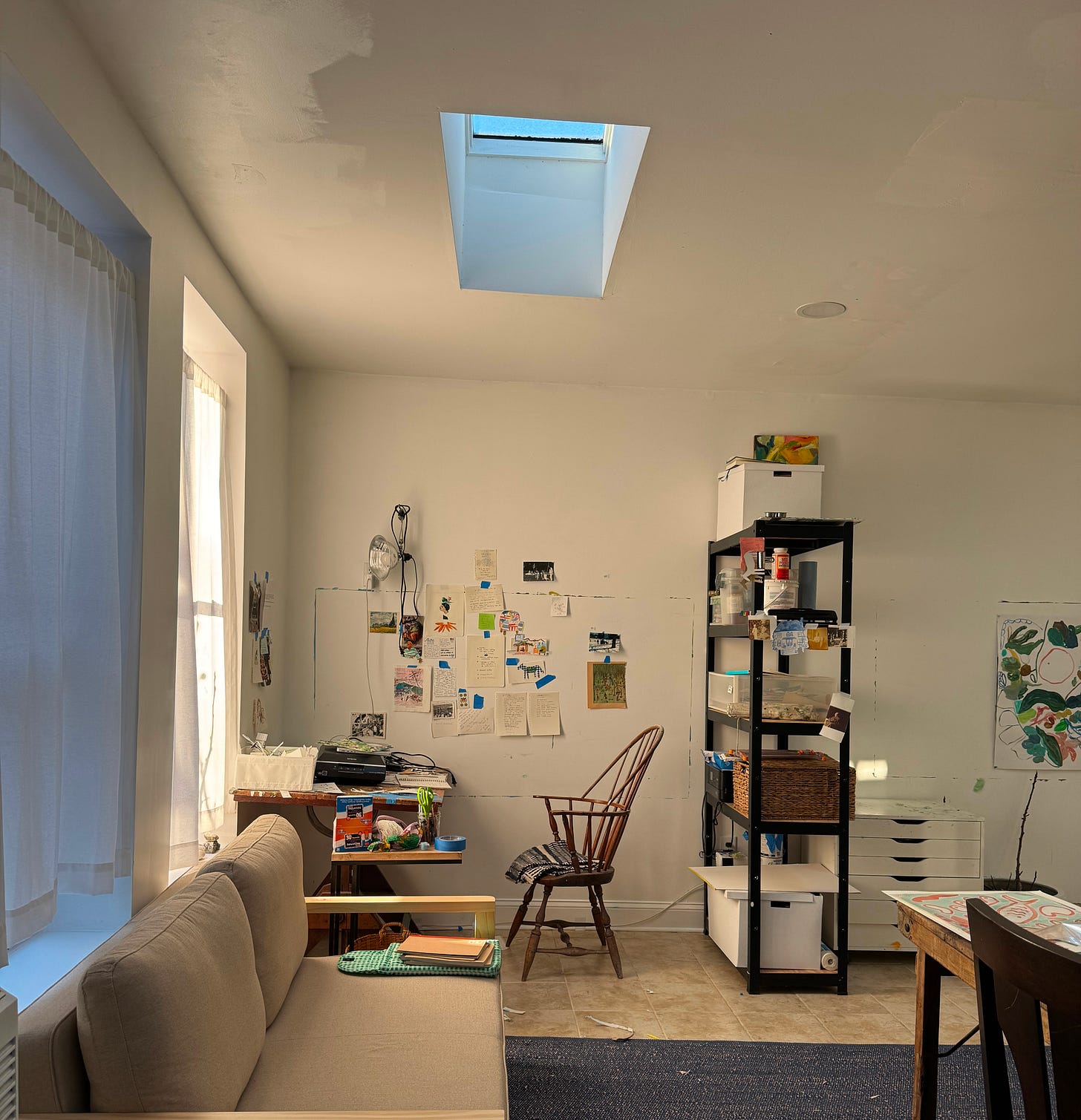 Rainy morning. Cafe au lait I made for myself and sitting at the kitchen table. It’s round and wooden and we found it at a second hand store before Thanksgiving. We’ve already had nights sitting around it with friends and a drink talking for hours.